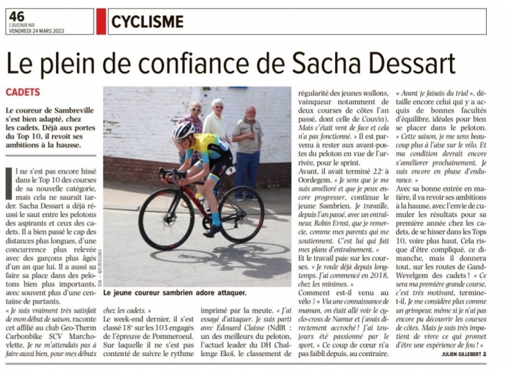 24mars, 2023 Le plein de confiance de Sacha Dessart L'Avenir, Julien Gillebert, 24 mars 2023 Lire la suite de Le plein de confiance de Sacha Dessart